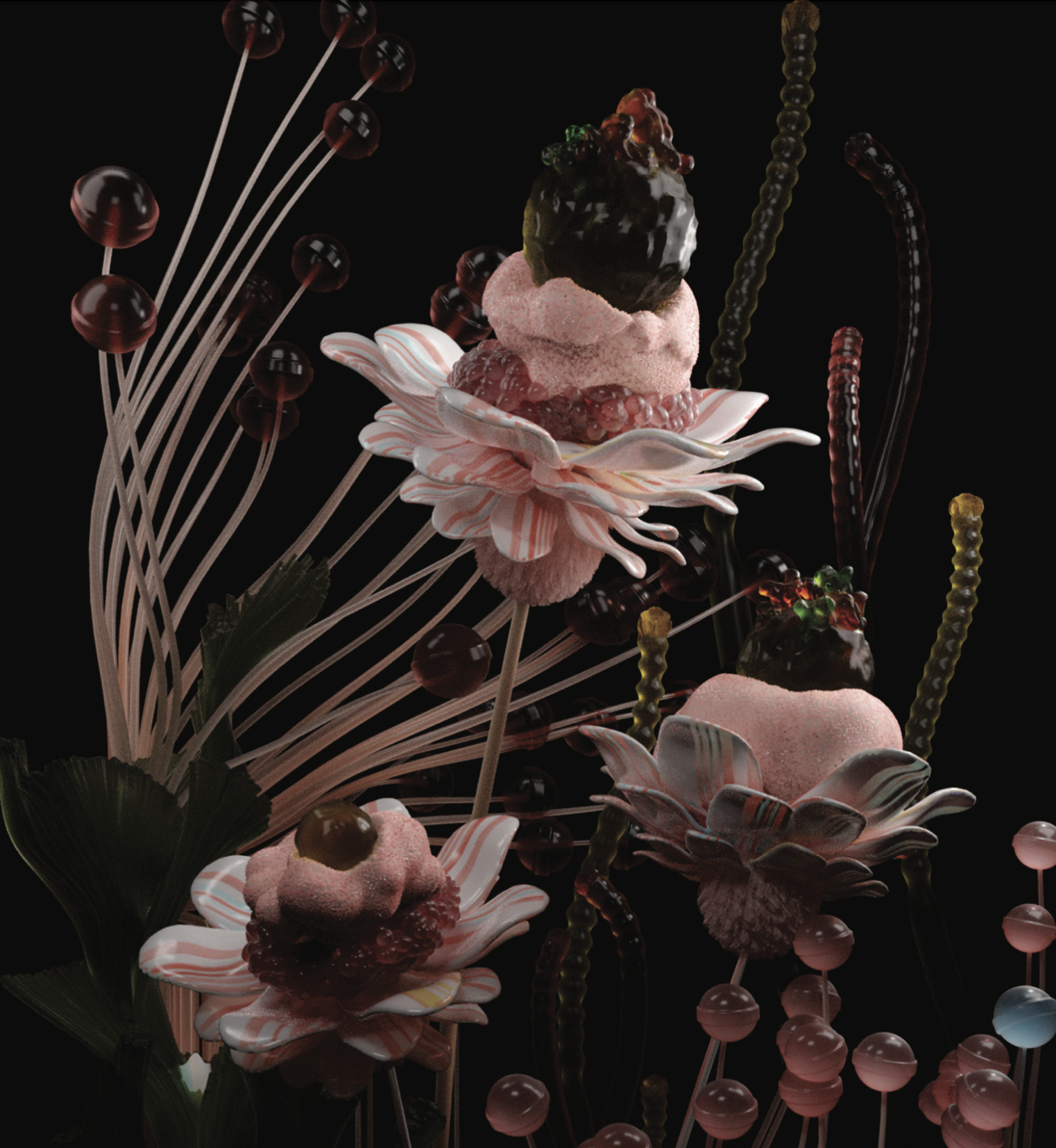 Í því samhengi má nefna sýninguna Faux Flora, þar sem þessi nálgun nær nýjum hæðum. Þar vinnur teymið út frá ímynduðu jurtaríki í gegnum ilm, hljóð og myndverk sem endurspegla lífsferil plantna. Sýningin er bæði fagurfræðileg og tilfinningaleg rannsókn á tengslum mannsins við náttúruna og sýnir hvernig Fischersund nýtir ólíka miðla til að móta heildrænan, draumkenndan og persónulegan heim.